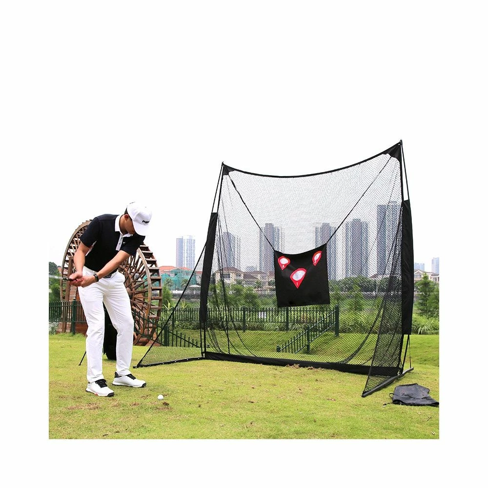 - Golf net with large hitting area allows for safe golf-swing practice
